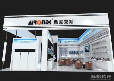 展廳設計以藍色為主色調:前廳有天花吊頂造型,以石膏板和天花軟膜為主。展廳頂面裸頂掃黑色乳膠漆再加上一些鋁方通,多邊形燈膜